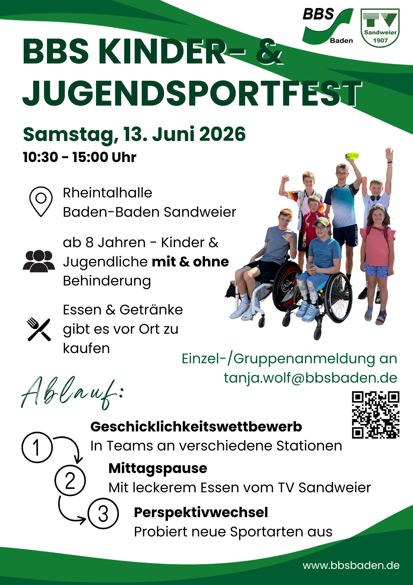 Am Samstag, 13. Juni 2026, findet in der Rheintalhalle Sandweier ein abwechslungsreicher Sporttag statt, der Kinder und Jugendliche mit und ohne Behinderung zusammenbringt und Raum für Bewegung, Begegnung und neue Erfahrungen schafft.