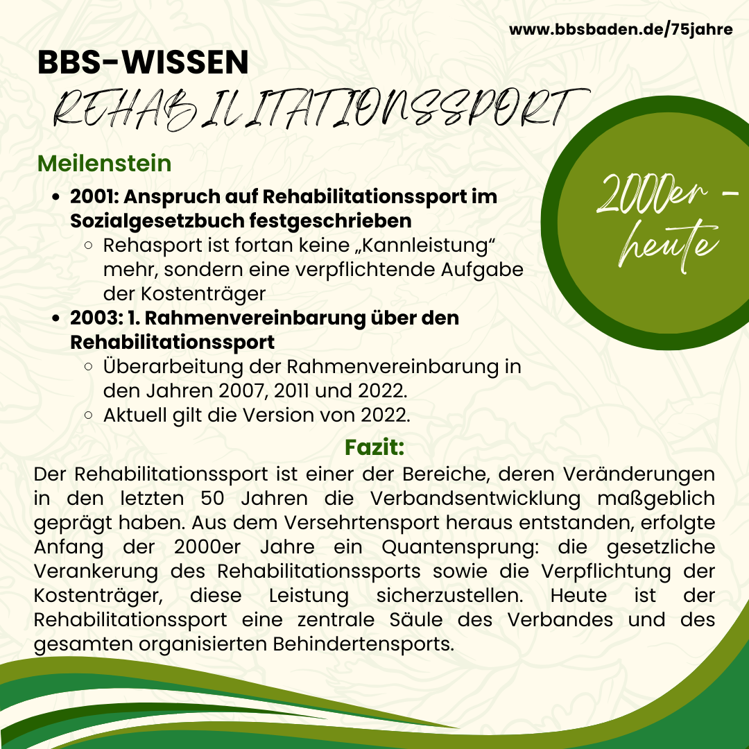 Rehabilitationssport kommt für behinderte und von Behinderung bedrohte Menschen in Betracht, um sie unter Beachtung der spezifischen Aufgaben des jeweiligen Rehabilitationsträgers möglichst auf Dauer in die Gesellschaft und das Arbeitsleben einzugliedern.