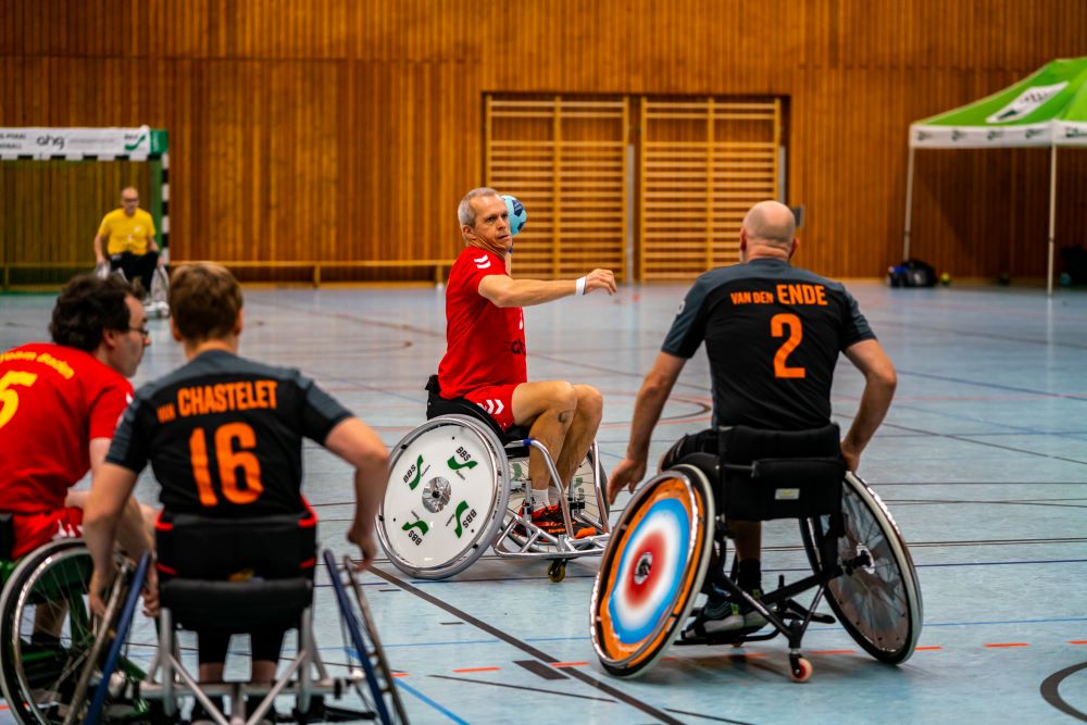 Beim Rollstuhl-Handball wird mit einem Ball der Größe 2 gespielt.