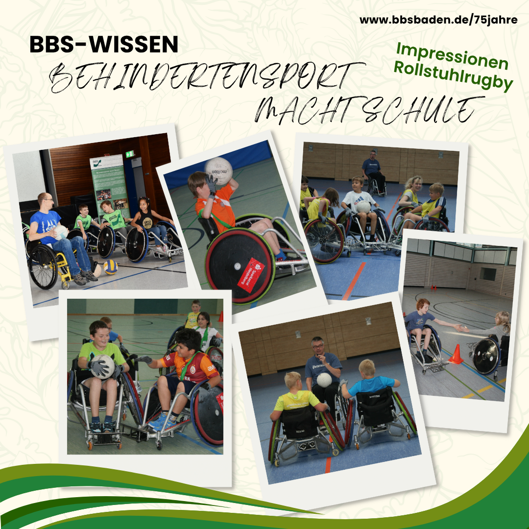 Rollstuhlrugby ist eine der spektakulärsten Sportarten für Rollstuhlfahrer. Unter Anleitung von Heiko Striehl, Beauftragter für Rollstuhlrugby im BBS, machen die Schülerinnen und Schüler in der Sporthalle ihre ersten Erfahrungen im Umgang mit einem Rugby-Rollstuhl und erfahren alles Wissenswerte über diese Sportart. Nach Übungen und kleinen Spielformen mit dem Rollstuhl, wird das Erlernte zum Abschluss in einem Rollstuhlrugbyspiel in die Praxis umgesetzt.